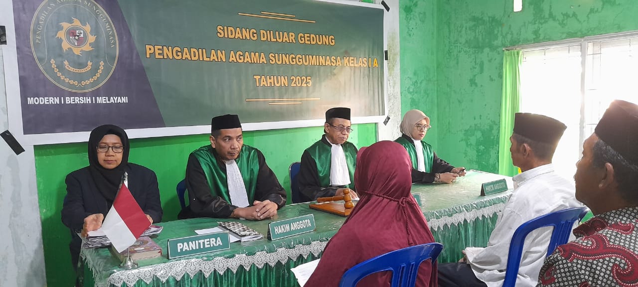 Pengadilan Agama Sungguminasa Gelar Sidang di Luar Gedung di Kecamatan Tinggimoncong, Kabupaten Gowa Sungguminasa – Jum’at, 24 Oktober 2025 — Pengadilan Agama Sungguminasa kembali menunjukkan komitmennya dalam memberikan pelayanan hukum yang optimal kepada masyarakat dengan melaksanakan sidang di luar gedung (sidang keliling) pada Jum’at, 24 Oktober 2025. Kegiatan ini dilaksanakan di Kantor KUA (Kantor Urusan Agama) Kecamatan Tinggimoncong, Kabupaten Gowa, dengan Ketua Majelis Hakim Drs. Muh. Arsyad. memimpin langsung jalannya persidangan dengan dibantu dua anggota hakim dan panitera pengganti.