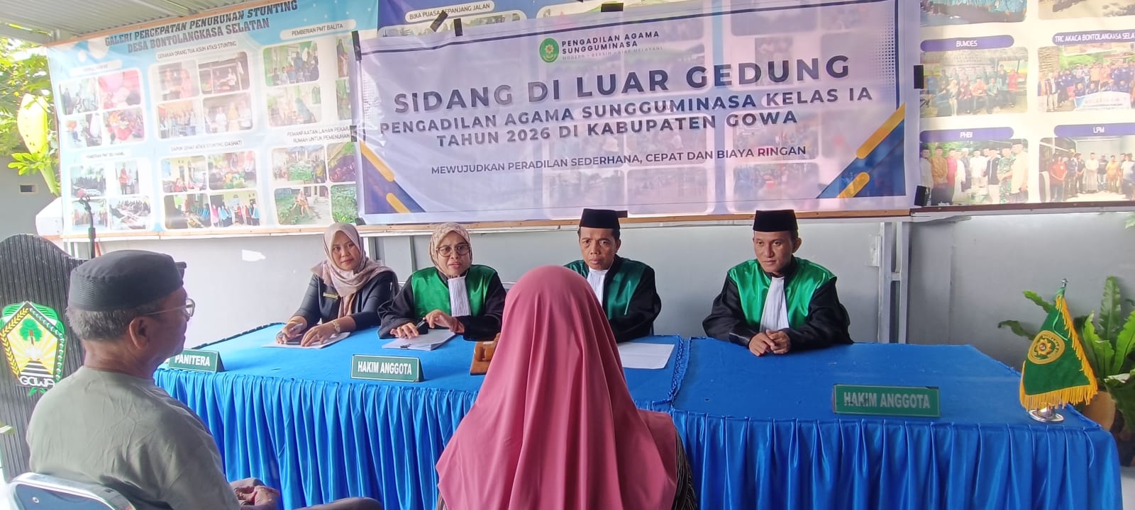 Sungguminasa – Selasa, 27 Januari 2026. Dalam rangka memberikan pelayanan hukum yang prima serta mendekatkan akses keadilan kepada masyarakat, Pengadilan Agama Sungguminasa Kelas IA melaksanakan kegiatan Sidang di Luar Gedung Pengadilan (Sidang Keliling) pada Tahun Anggaran 2026. Kegiatan ini bertujuan untuk memudahkan masyarakat pencari keadilan agar dapat memperoleh pelayanan hukum secara cepat, mudah, dan terjangkau.