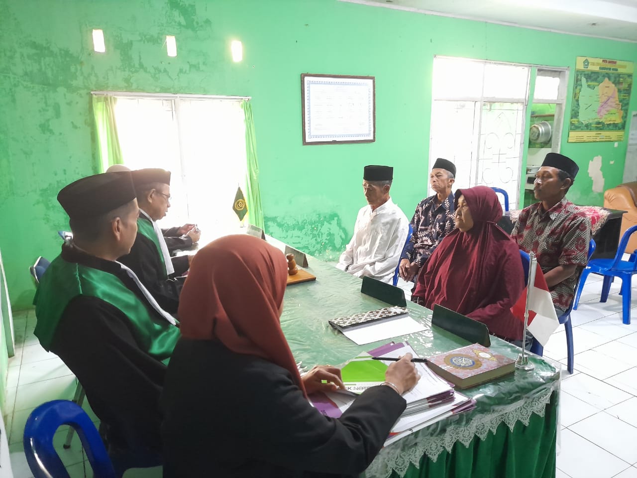 Sungguminasa – Jum’at, 24 Oktober 2025 — Pengadilan Agama Sungguminasa kembali menunjukkan komitmennya dalam memberikan pelayanan hukum yang optimal kepada masyarakat dengan melaksanakan sidang di luar gedung (sidang keliling) pada Jum’at, 24 Oktober 2025. Kegiatan ini dilaksanakan di Kantor KUA (Kantor Urusan Agama) Kecamatan Tinggimoncong, Kabupaten Gowa, dengan Ketua Majelis Hakim Drs. Muh. Arsyad. memimpin langsung jalannya persidangan dengan dibantu dua anggota hakim dan panitera pengganti.
