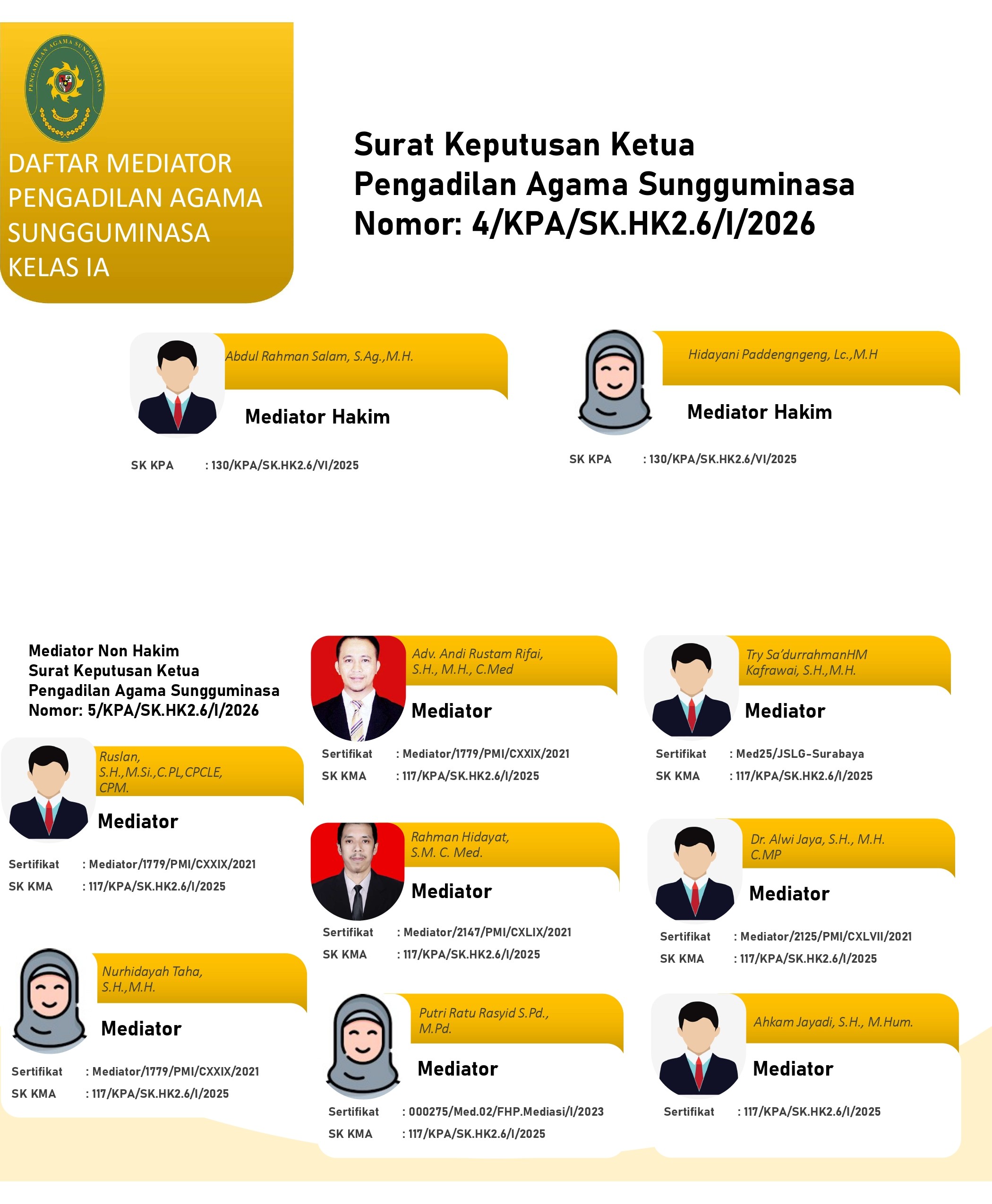 | 26. | 441/Pdt.G/2025/PA.Sgm | Ceri Gugat | 15 Mei 2025 | Rahman Hidayat,S.M. C.Med. | Tidak Berhasil |