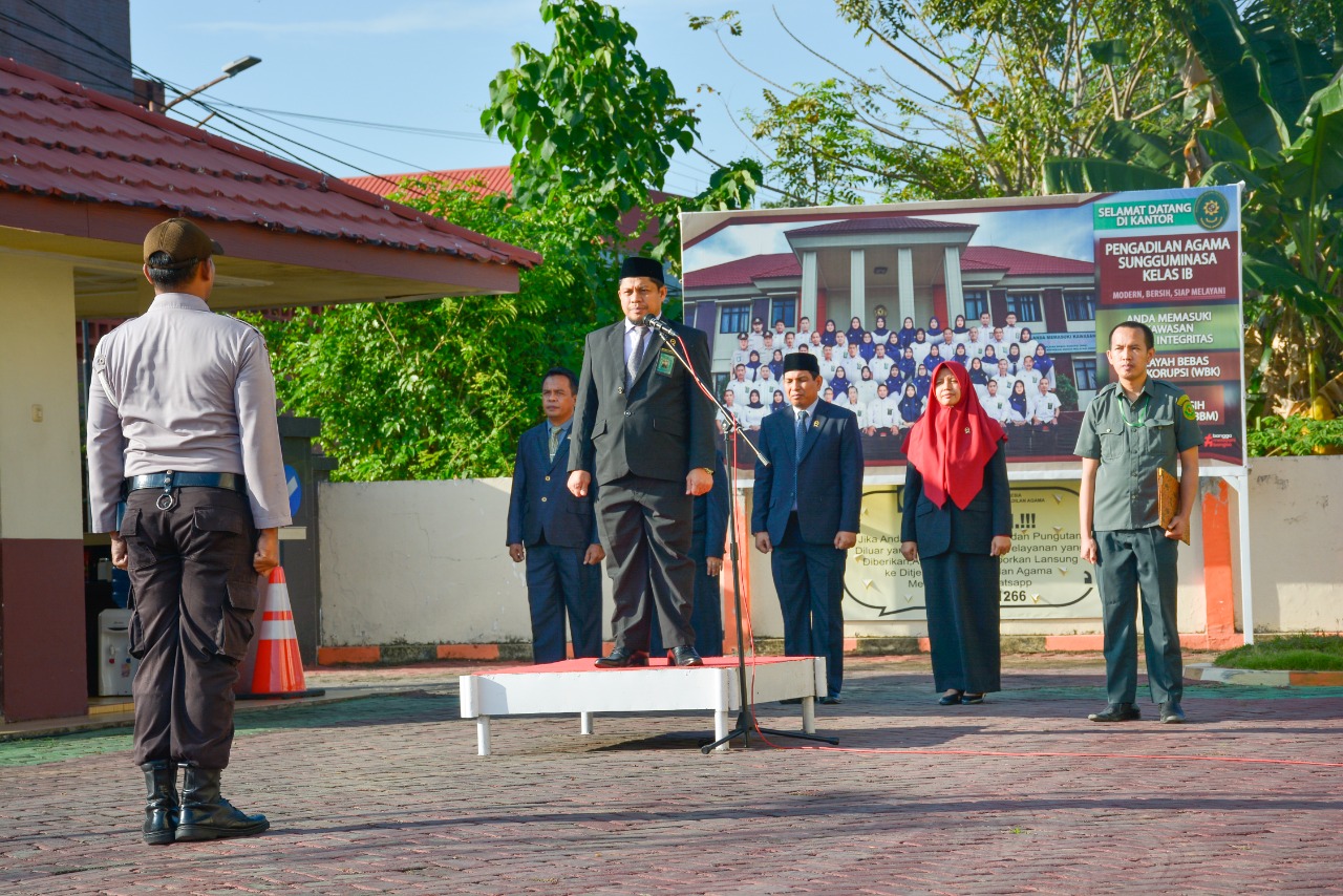 Bertindak sebagai Inspektur Upacara,Ketua Pengadilan Agama Sungguminasa, Dr. Mukhtaruddin Bahrum, S.H.I., M.H.I. Upacara ini diikuti oleh Ketua, Wakil Ketua, Hakim, Panitera, Sekretaris dan seluruh aparatur PA Sungguminasa.