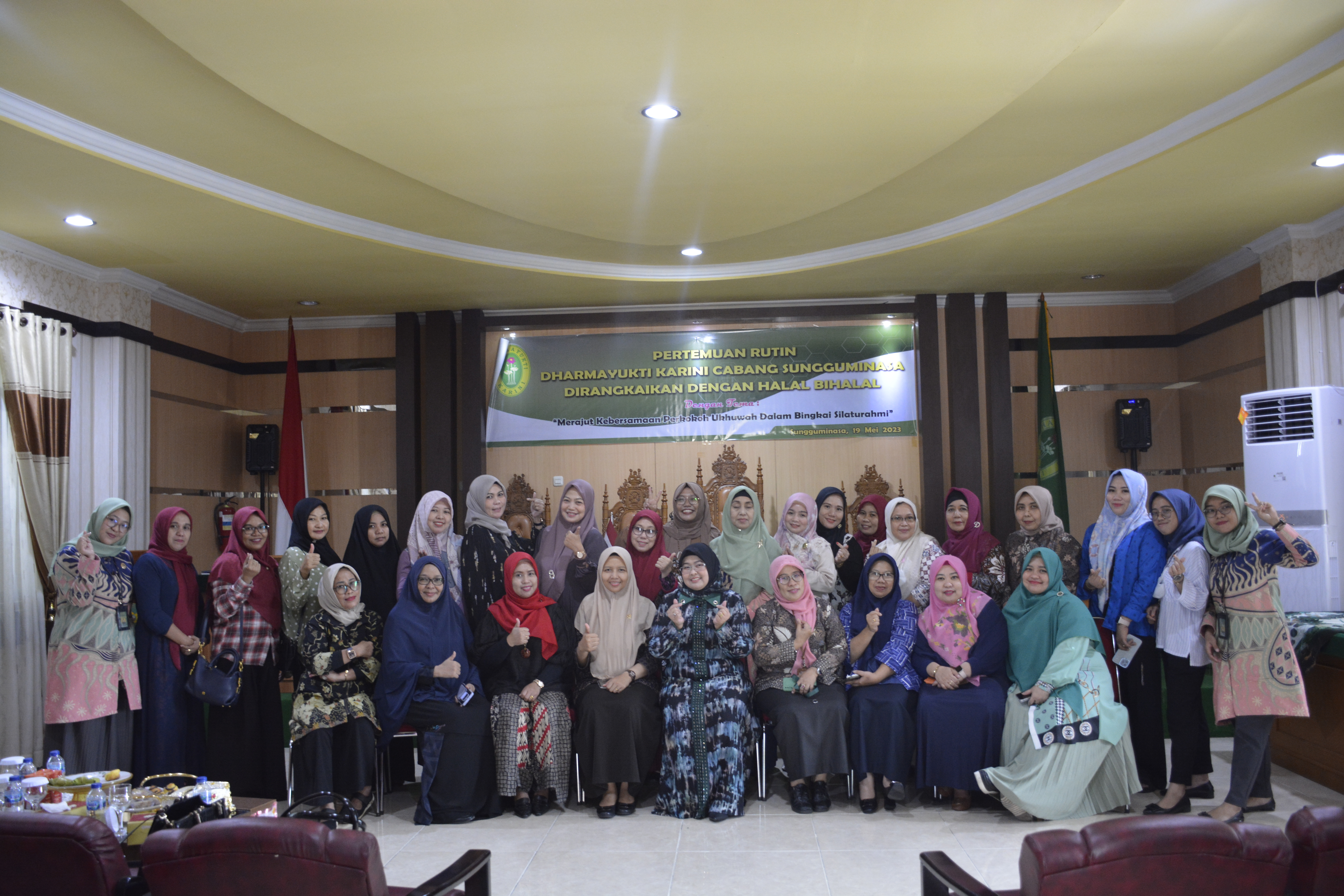 Sungguminasa, 19 Mei 2023. Dharmayukti Karinin Pengadilan Agama Sungguminasa melangsungkan acara Pertemuan Rutin Dharmayukti Karini cabang Sungguminasa yang pada kesempatan kali ini dirangkaikan dengan acara Halal Bihalal dengan tema “Merajut kebersamaan Perkokoh Ukhuwah dalam bingkai silaturahmi”. Acara yang rutin diselenggaran tiap 1 bulan sekali itu di laksanakan di Aula Pengadilan Agama Sungguminasa Jl. Mesjid Raya, No. 25, Sungguminasa, Kab. Gowa.