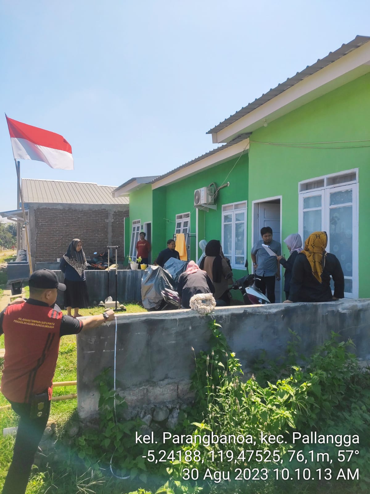 Sungguminasa - Rabu, 30 Agustus 2023. Pengadilan Agama sungguminasa melaksanakan Pemeriksaan Setempat (descente) di Kelurahan Parang Banoa Kec. Pallangga dengan Nomor Perkara 1010/Pdt.G/2023/PA.Mks. yang merupakan perkara bantuan dari Pengadilan Agama Makassar. Pemeriksaan Setempat ini bertempat di Kelurahan Parang Banoa Kecamatan Pallangga, Kabupaten Gowa. Pelaksanaan Pemeriksaan Setempat tersebut, berjalan sesuai dengan ketentuan Pasal 180 R.Bg.
