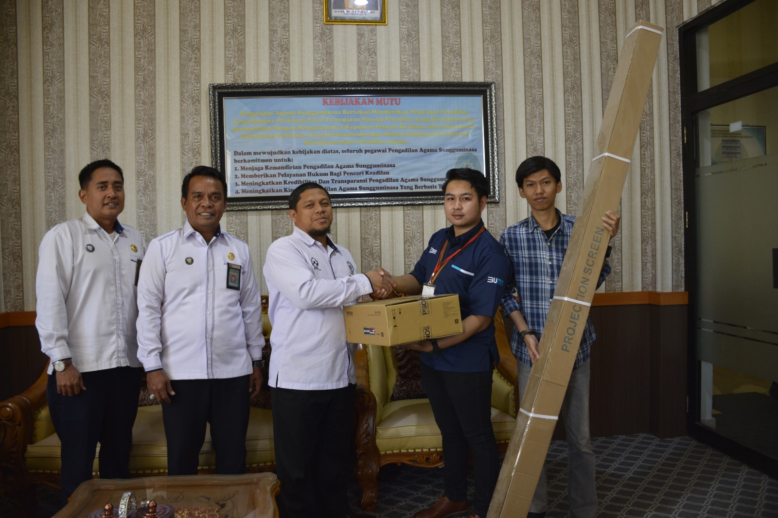 Sungguminasa - Senin, 28 Agustus 2023. Pengadilan Agama Sungguminasa berkesempatan mendapatkan bantuan dari Bank Rakyat Indonesia (BRI) Cabang Kab. Gowa berupa Proyektor dan Layar, Ketua (Dr. Mukhtaruddin Bahrum, S.HI.,M.HI) menerima langsung bantuan tersebut didampingi oleh Sekretaris (Dr. Yusran, S.Ag.,M.H.) dan Kasubag Umum dan Keuangan (Moh. Riski Prakarsa Kadang, S.E.).